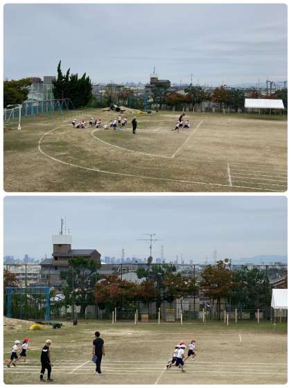 1年生は徒競走の練習です。まっすぐゴールを見て走るのが速く走るコツですね。