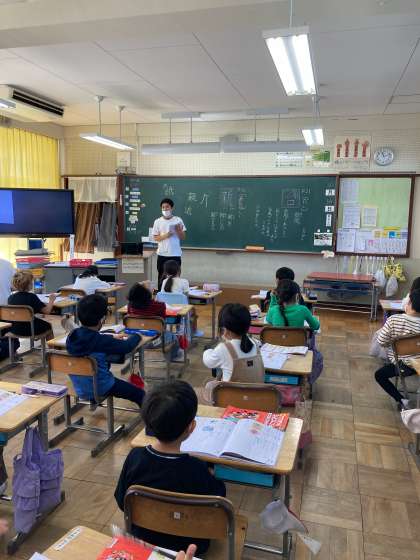 新出漢字「台」「新」の学習中です。「新」を使った文章を子どもたちが考え発表しています。「新年のお年玉をもらう」という意見で子どもたちは大盛り上がりでした。