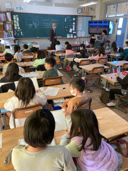 音楽発表会の練習中の動画を見ながら、友だちのよかったところを振り返っています。ホワイトボードに書いたよかったところを伝えていました。「声が大きくてよかったよ」「ありがとう」などのやりとりがありました。伝えられた子の笑顔がとてもすてきです。