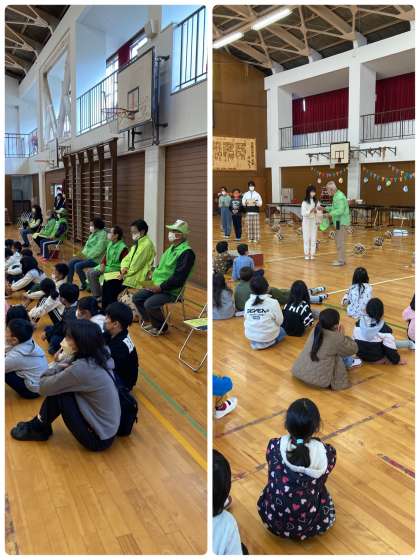 音楽学習発表会の前に見守り隊感謝集会です。児童会会長から見守り隊の方に日ごろの感謝を伝えました。見守り隊の方からもあいさつをいただきました。見守り隊のみなさん、暑い日も、寒い日も子どもたちを見守ってくださってありがとうございます。