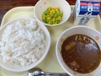 今日の給食は、ハニーパン、キャベツのポトフ、バターコーン、牛乳です。