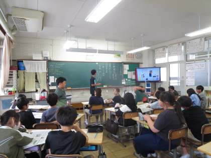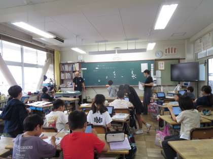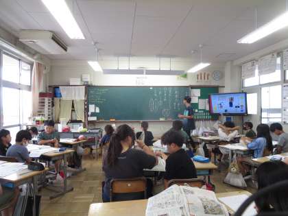 4年生の教室を覗いてみると、国語で新聞の見方を学習していました。図書室にある小学生新聞を一人一つ手元におきながら、どんな構成になってるかを学びました。新聞は今は家庭でとっている方も少なくなってきて、子どもたちにとって馴染がないようですが、記事の構成の仕方を学ぶことで、学習のまとめを新聞形式で行うときに活かしていってほしいです。隣のクラスは算数で、まとめのラリーを行っていました。