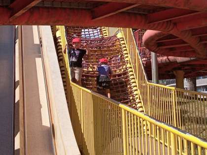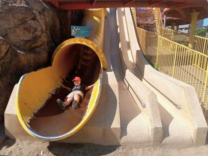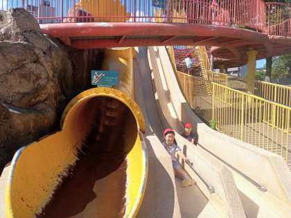 お弁当を食べ終わったら、公園で遊びました。長い滑り台があって、楽しそうに滑っていました。