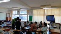 1月29日(木)北条中学校において、数学の分割授業を見せてもらいました。北条中学校の北畑先生が2年生の数学「確率」の授業をされました。導入でイブ・ノーベル賞(つまらないことを真面目に一生懸命やったことに対する賞)の話をされて、生徒を引き付け、学習に入られました。学習活動が多く、どの生徒もがんばっていました。