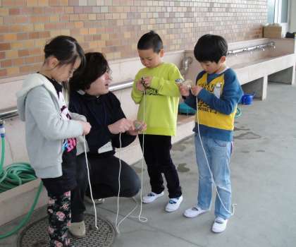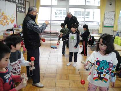 地域の皆さんに「昔遊び」を教えていただきました。<1年生>2