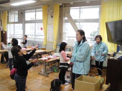 けん玉」「お手玉」「こま」「羽子板」の4つのチームに分かれて教えていただきました。できなかったことができるようになったと喜ぶ1年生もいました。地域の皆さん、本当にありがとうございました。