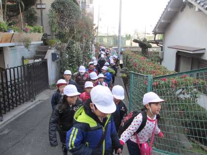 2月4日(水)立春という名にふさわしい?温かく良い天気に恵まれ、深北緑地公園でマラソン記録会を行いました。学校から深北緑地公園までは、きょうだい学年で手をつないで行きました。