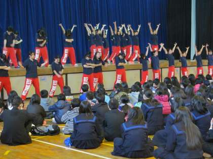 四條畷学園ダンス部のキレのあるダンスは、さすが全国レベル!小中の児童生徒も教えてもらいましたが、ちょっと照れくさそうです。