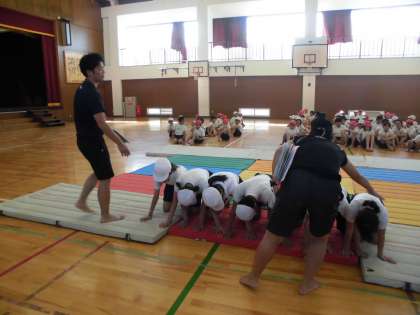 いよいよ大詰め。練習にも気合が入ります。「がんばれ」「下の(段の)子、がんばってな」。子どもたちから、自然と励ましの声かけが。
