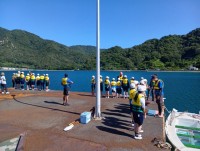 体験活動の3つ目は、カッター体験です。「オーエス、オーエス」と掛け声をかけて、オ...