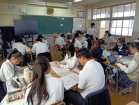 2組は英語の授業でした。AETの質問に英語で答えていました。英語でのやりとりを楽...