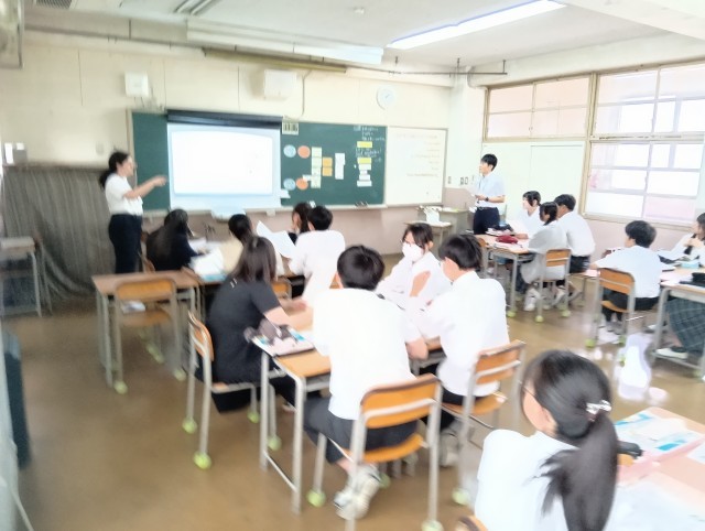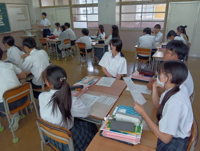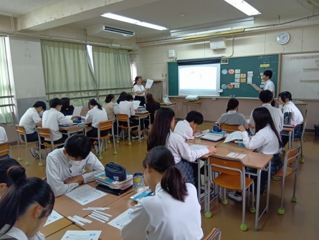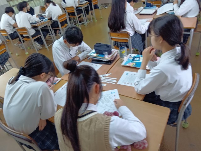 英語で説明を聞き、問題に挑戦していました。オールイングリッシュの授業です。