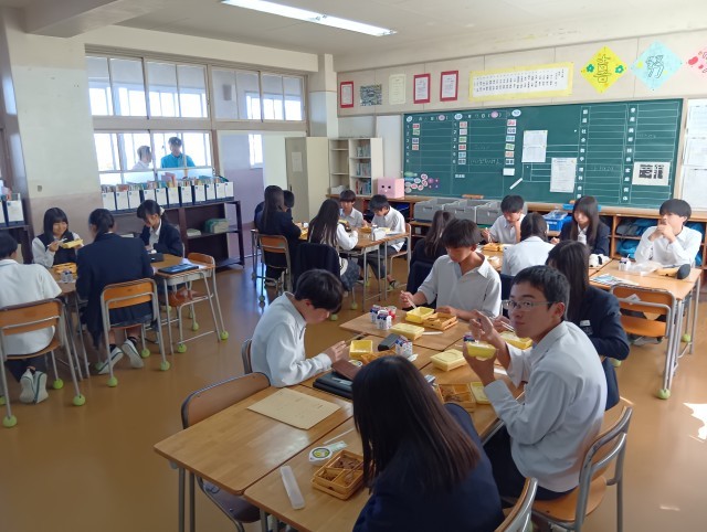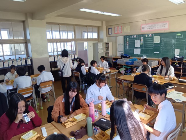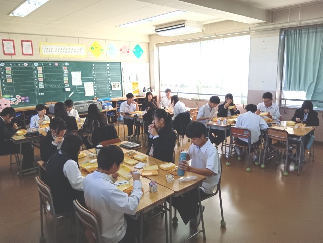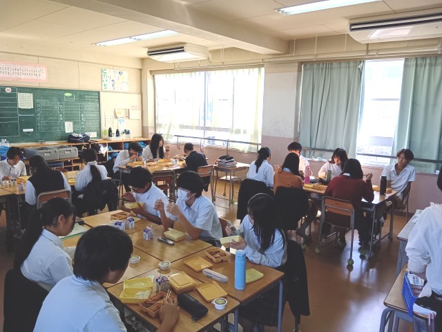 2年生は、班の隊形になってのランチタイムです。みんな班で楽しく昼食です。