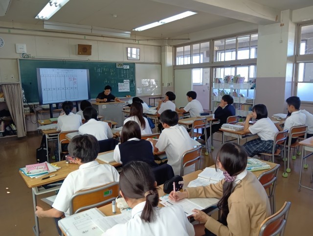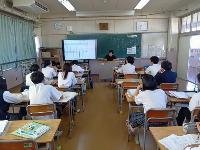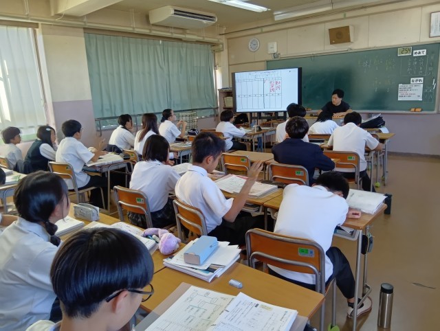 実力テストの返却のあとに文法を確認しているところでした。