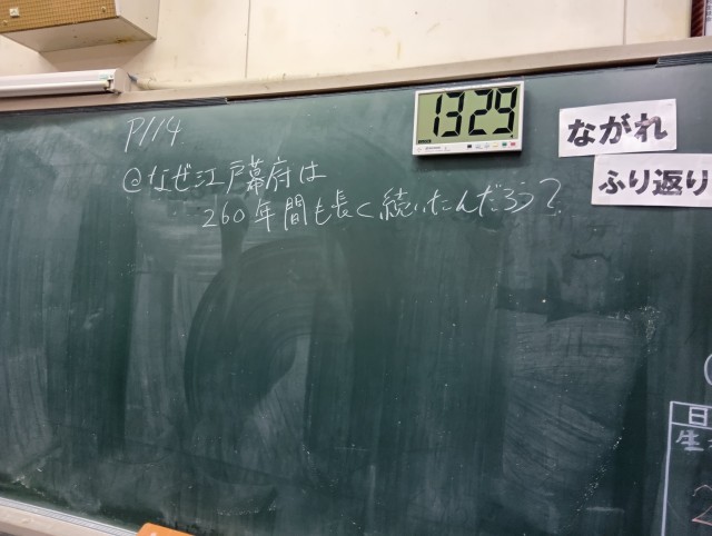 「なぜ江戸幕府は260年間も長く続いたんだろう?」という課題にとりくんでいました。