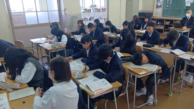 先生の話を聞きながら、しっかりプリントに書き込んでいました。