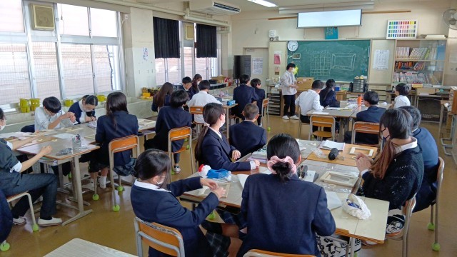 1組は美術の授業でした。