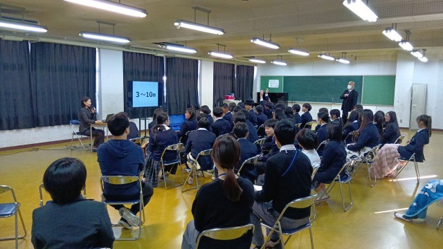 1年生は、本校の制服を作っていただいている瀧本株式会社から講師としてお越しいただき「身だしなみセミナー」を行いました。