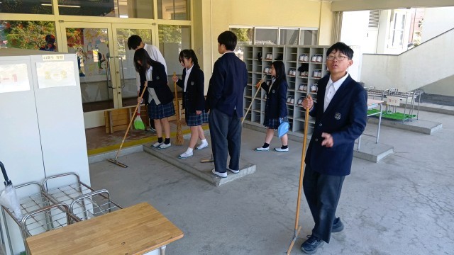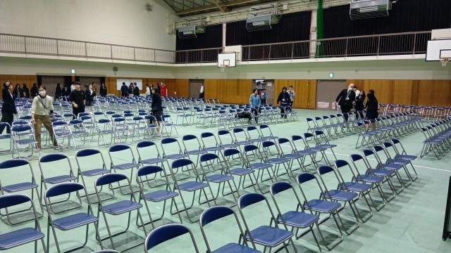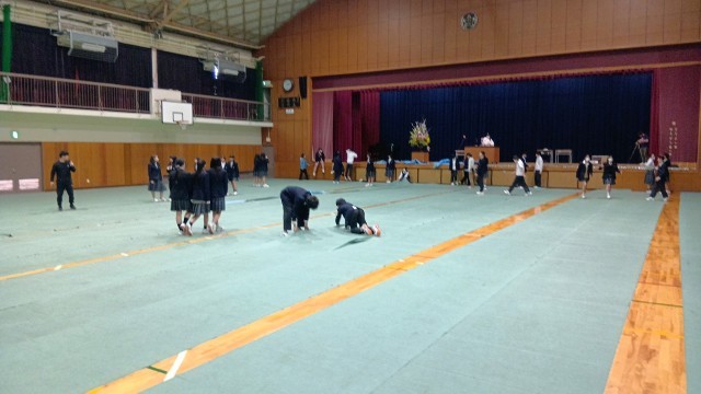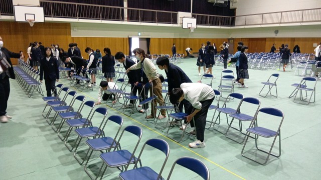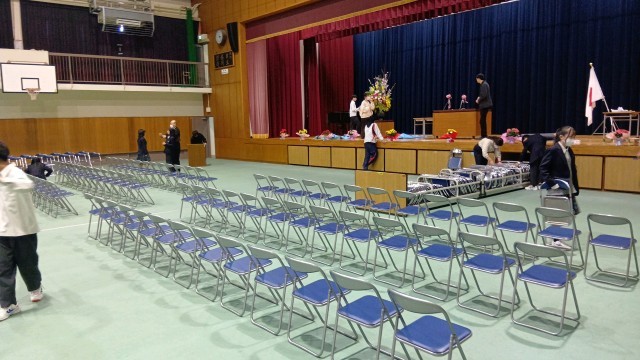 1,2年生が明日の卒業式の準備を一生懸命にしています。