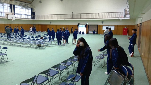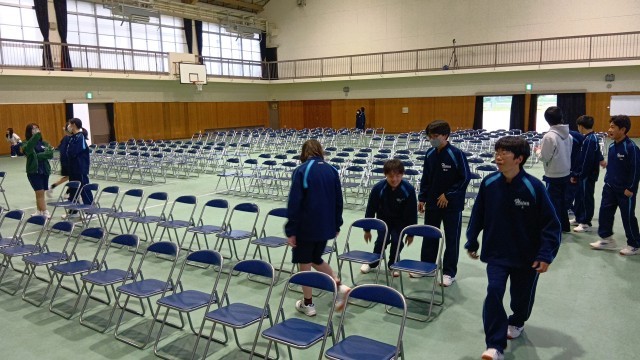 新2、3年生全員で明日の入学式の準備を行いました。