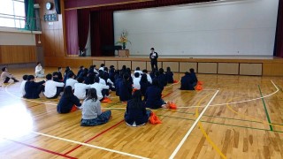 2年生は学年集会で新しく来られた先生のお話を聞いているところでした。