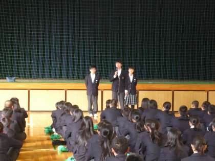体育委員会からラジオ体操コンクールや昼休みの貸出しについて、報道委員会からは、部活動の紹介について報告やお知らせがありました。