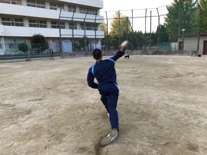 練習はキャッチボールから始まります。自分の思ったところにボールを投げられたときや、キャッチしたときに「バンッ」と良い音が鳴ったときが楽しいそうです。部員は5人と少ないですが他校と合同チームを組み頑張っています。