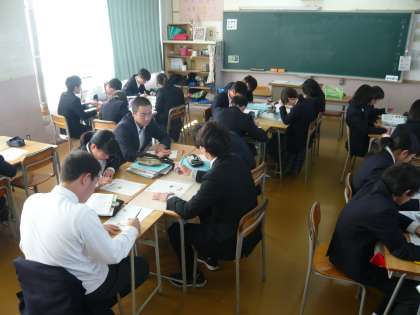 3年生は、1組が理科、2組が英語(分割)の授業です。