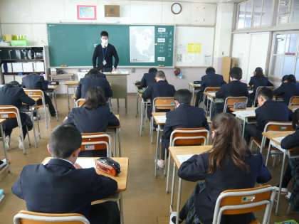 1年生の3限の授業は、1組が家庭、2組が社会です。