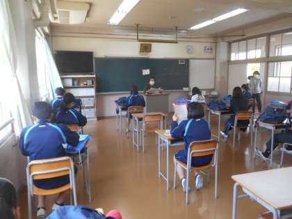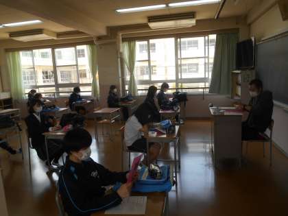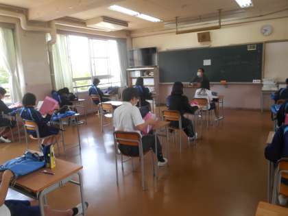 学年集会の後は、教室に入りました。28人学級を密を避けるために14人ずつの二つに分けて連絡等をしました。