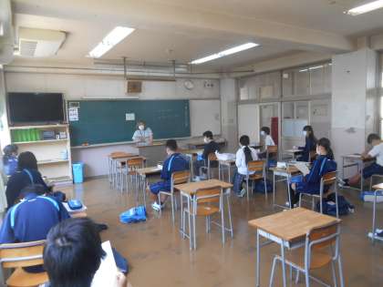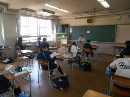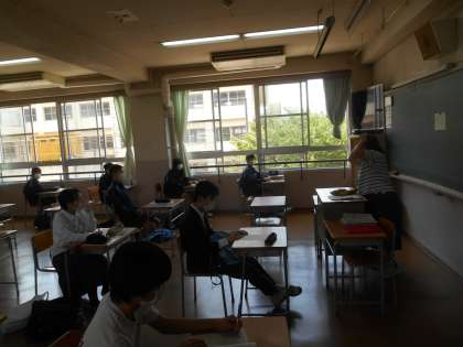 教室に入ってからは、宿題を集めて、新しい課題を渡したりしました。