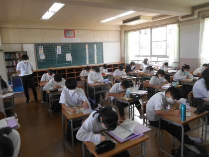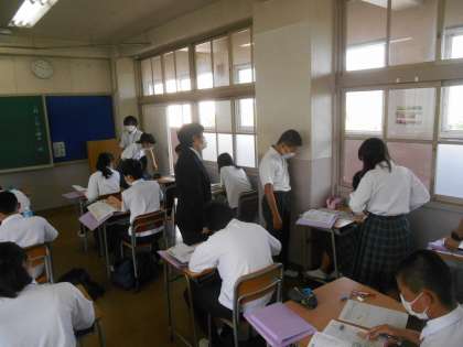 理科の先生が「全員のノートを見たけど、○○さん、○○さん、○○さん、○○さんのノートはとてもよかった。参考になりますよ。その人のノートを見に行っていいよ。」と言いました。すると、何人かの人が実際にノートを見に行って感心していました。見に来てもらった人もうれしかったでしょうね。すばらしい。