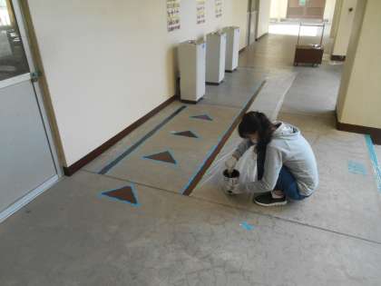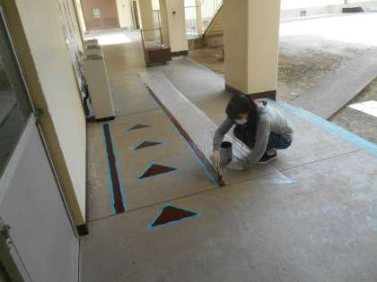 校務員さんが暑い中、ペンキ塗りをしていました。昨日は窓によしずを張ってもらいました。すばらしい。