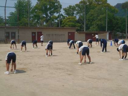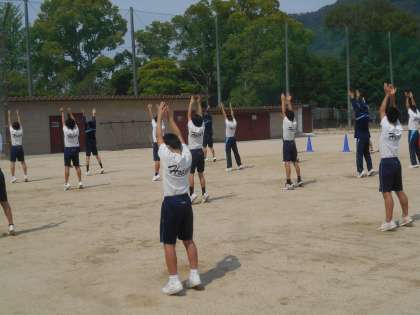 集団行動の訓練を何度かした後、今度はラジオ体操を繰り返し練習しました。もちろん、間に休憩を入れながらです。よくがんばりました。