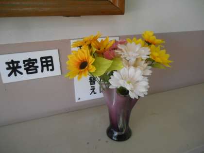 職員下足ですが、校務員さんがきれいな花を用意してくれました。こういう環境はすごく大切だと思います。