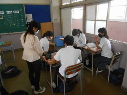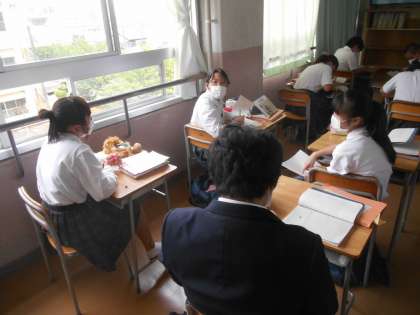 国語の時間に教科書の文章から、あなたならどうしますか、という問いかけに班で話し合っているところです。