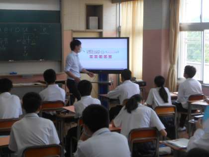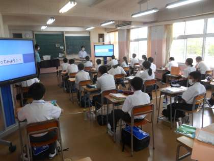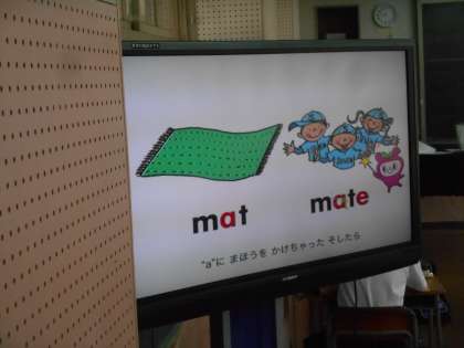 これは英語の発音(歌)をDVDを使って楽しく聞いているところです。テレビが2台あるので、後ろの人も見やすいです。