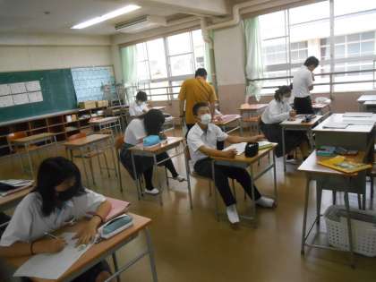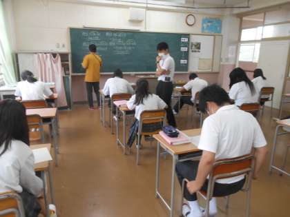 こちらも数学の分割授業です。問題を解いていました。先生が質問に答えていっていました。