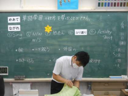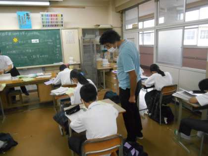 英単語の学習法について勉強していました。写真は授業終わりのふり返りを書いているところです。