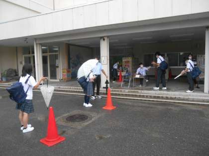 雨です。晴れると暑いし、気温が下がると雨です。登校が始まりました。