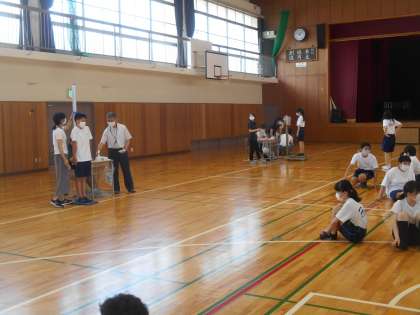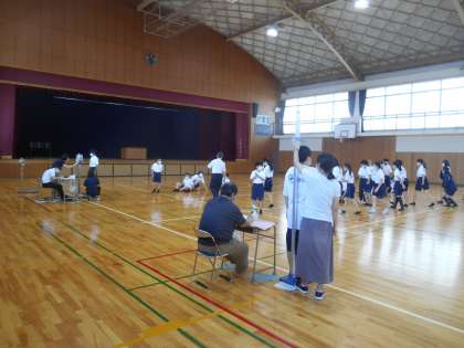 体育館で身体測定を行いました。