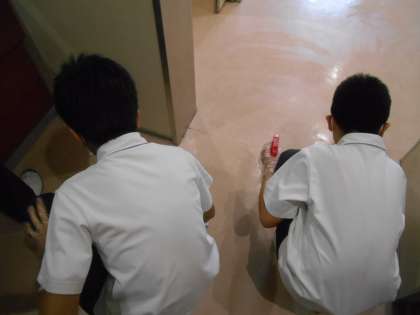 きのうの久しぶりの掃除の様子です。アップし忘れていました。3枚目はトイレそうじです。消毒液でていねいにそうじしています。みんな、すばらしい。