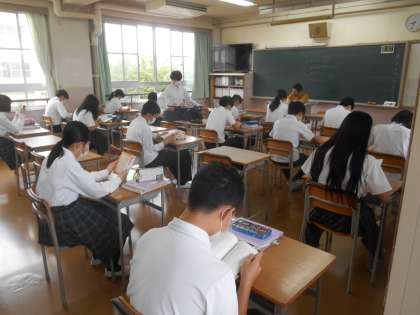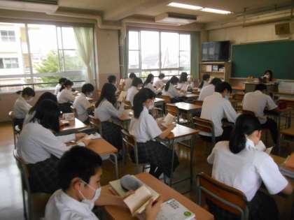 通常のことがまた一つ増えました。朝の読書の時間です。8時30分の登校後には全生徒が読書を行います。今日が初日の1年生もしっかりと読書していました。これで1日が始まると、落ち着いたスタートが切れます。