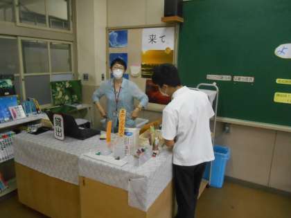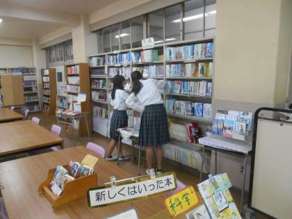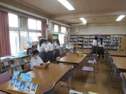 図書室です。ここに来ると本好きが集まって、「この本おもしろかったよ。」「ほんと?」などと、語り合っています。ホッとします。