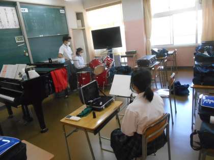 吹奏楽部です。文化部とはいえ、人数が欲しいクラブです。それぞれの個人練習をしているところでした。