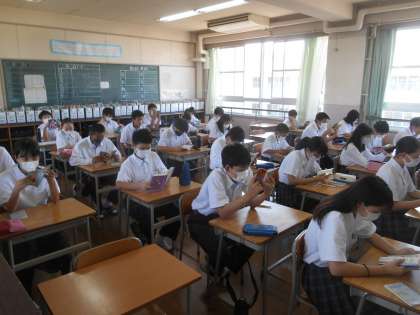 今日も読書で始まりました。3枚目は担任の先生からの朝のメッセージです。