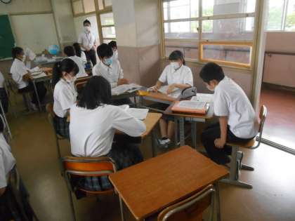 明治時代の政治改革で、日本の国際的立場がどう変化していったのか、それを学習のめあてに授業が進みました。写真は、それについて、各自が自分の考えを発表しているところです。すばらしいと思いました。この難しいテーマについて、堂々と語っていました。
