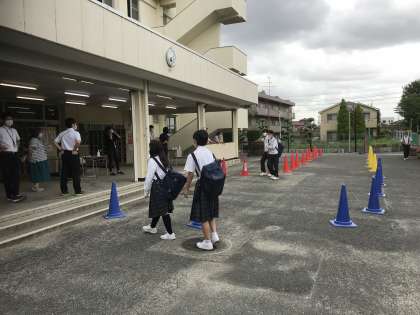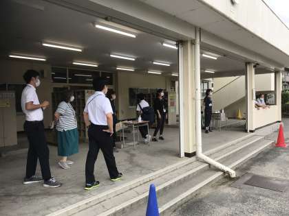 おはようございます。登校スケッチです。体調確認をして校内に入ります。