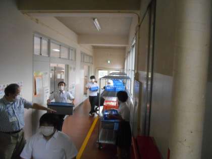 配膳室に取りにいく様子です。