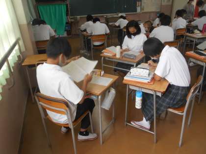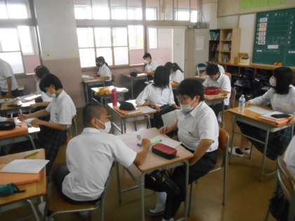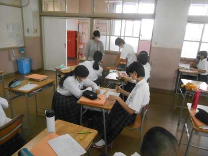 文法の時間です。形容詞、形容動詞の勉強をしていました。班ごとに全員が分かるようになろうという目標です。学びあい、すばらしい。